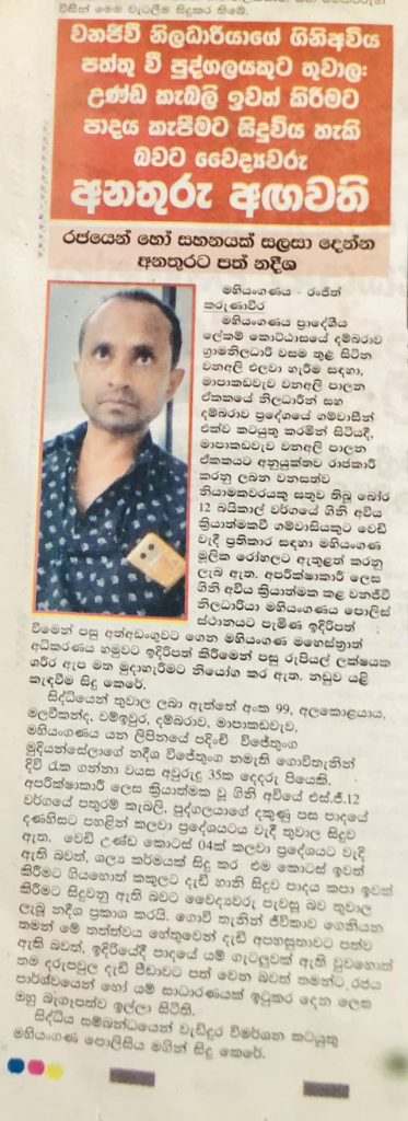 සොරබොරවැව ධීවර සමිති ගැටළුව දුරදිග ගොස් මහජන සෞඛ්ය පරීක්ෂක වරයෙකු, රෝහල්ගතව සිටි පුද්ගලයෙකුට පහරදීමක් සිදුකර ඇත Aug 22, 2025 Ranjith Karunaweera