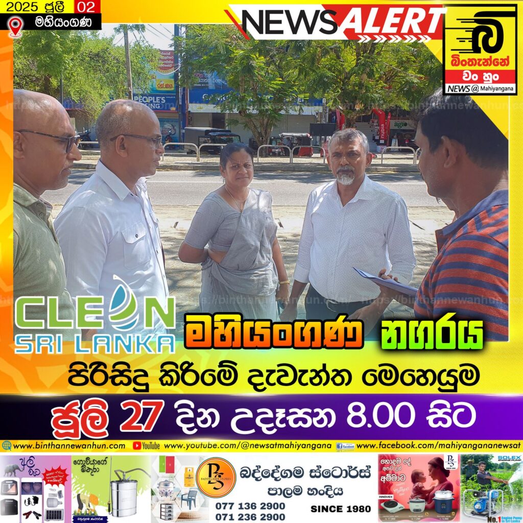 “ක්ලීන් ශ්‍රී ලංකා ” වැඩසටහනට සමගාමීව මහියංගණ නගරය පිරිසිදු කිරිමේ දැවැන්ත මෙහෙයුම ජූලි 27 දින උදෑසන 08.00 සිට ආරම්භ කෙරේ.