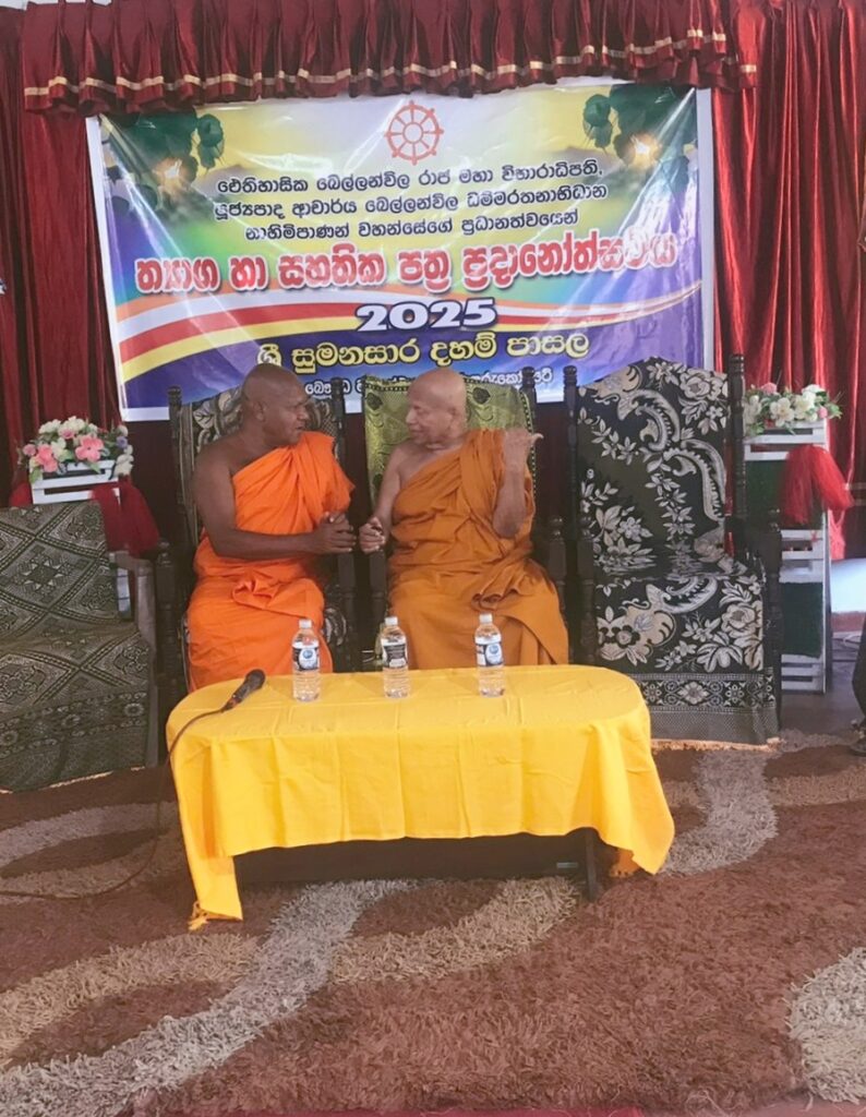 උන්වහන්සේ එළෙස දේශනා කළේ, පසු ගියදා (05/06 දෙදින) ගිරාඳුරුකෝට්ටේ ශ්රී ධර්මෝදය බෞද්ධ මධ්යස්ථානයේ දී පැවැත්වූ බෙල්ලන්විල රාජමහා විහාරාධිපතිව වැඩ සිට අපවත් වී වදාළ බෙල්ලන්විල ශ්රී සෝමරතන හිමිපාණන් වහන්සේගේ සහ, අපවත් වී වදාළ මහාචාර්ය බෙල්ලන්විල විමලරතන අනුනාහිමිවරුන් සිහිපත් කරමින් වාර්ෂිකව පවත්වනු ලබන දෙදින දානමය පුණ්ය කර්මයේ ගැබිණි මාතාවන් හා අඩු ආදායම්ලාභී පවුල් සඳහා වියළි ආහාර සලාකයක් ලබාදීම. දහම් පාසල් දරුවන් වෙනුවෙන් ත්යාග හා අධ්යාපනිකඋපකරණ පිරිනැමීමේ උත්සවයේදී.