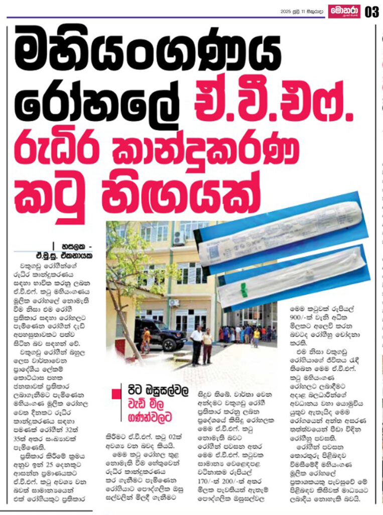 මහියංගණ රෝහලේ රුධිර කාන්දුකරණ ඒකකයේ කටු හිිිිිඟයක්