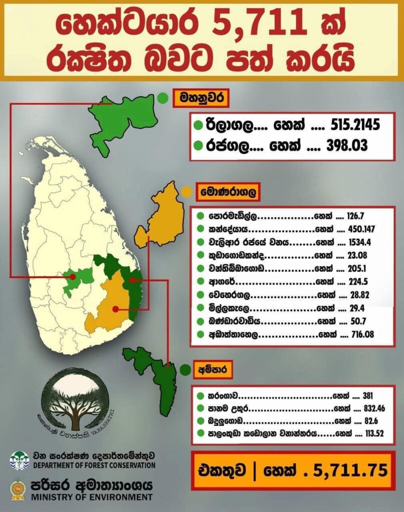 මාස දෙකක් වැනි කාලයකදී රජය වනාන්තර හෙක්ටයාර 5 000කට වැඩි ප්‍රමාණයක් රක්ෂිත බවට පත්කළා