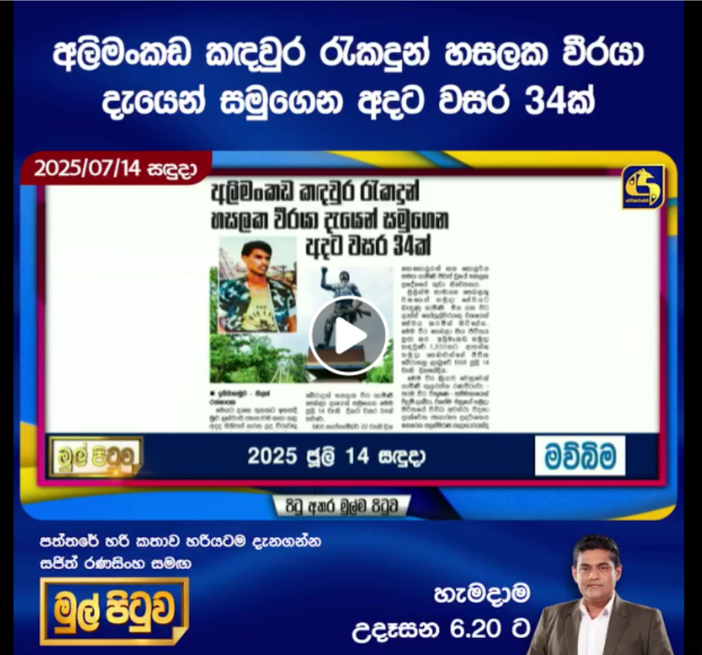 අලිමංකඩ කඳවුර රැකදුන් හසලක වීරයා දැයෙන් සමුගෙන අදට වසර 34ක්…