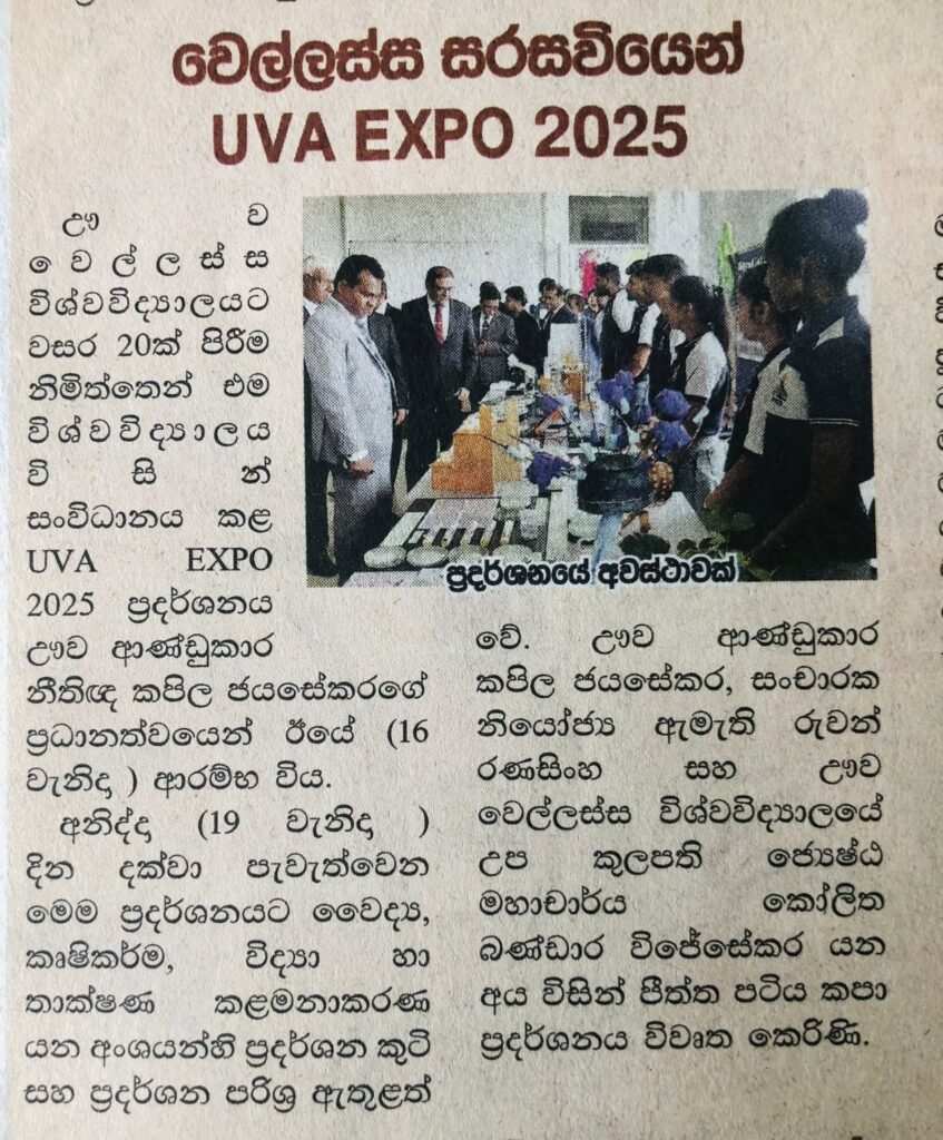 ඌව වෙල්ලස්ස සරසවියෙන් ප්රදර්ශණයක් Post navigation අගයන්නම ඕන අනිවාර්යයෙන්මමහවැලි අධිකාරියෙන් රිදිමාලියද්දට කෝටි එකහමාරක්